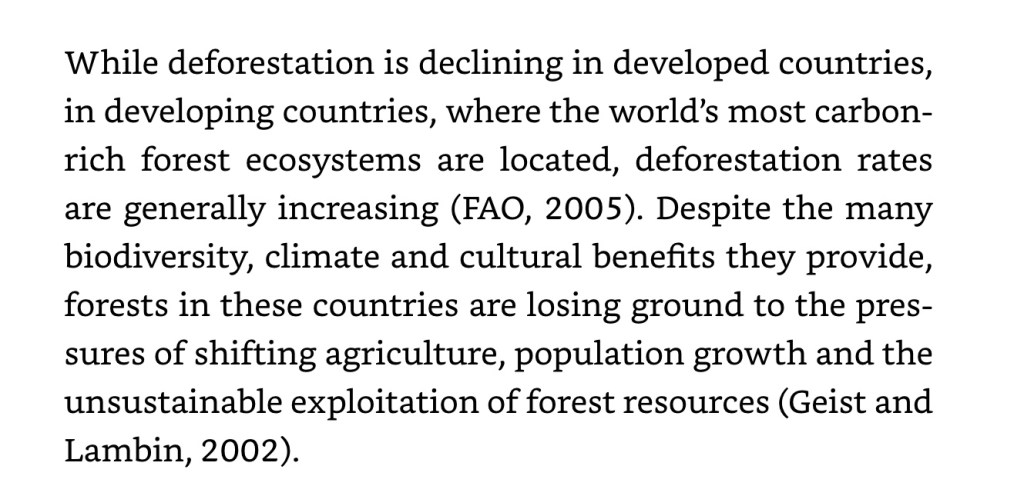 Här verkar det viktiga skälet vara att att jordbruk, ökad befolkning och stark exploatering av skogsområden är vanligt i länder i en mer pressad situation medan det i rikare länder finns större utrymme för att värdesätta skogen. Det bör troligen vara skillnad på fokus så att fattiga länder får stöd i att avstå från hårdexploatering av sina skogar. Länder i Europa och Nordamerika bör snarare gå djupare in på hur olika former av skogsbruk påverkar mängden kol som lagras i marken. Sverige kan verkligen ligga i framkant kring att undersöka vad som lagrar mycket kol i marken och också innebär stor genomsnittlig biomassa.