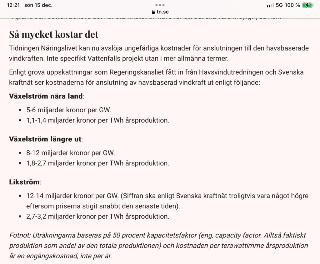 Jag börjar luska i kostnaderna för att bygga havsbaserad vindkraft. Det här med att den utretts så länge och ännu inte egentligen tagit fart innebär en signal om att det kan bli mycket dyrare, svårare och riskablare än man trott.