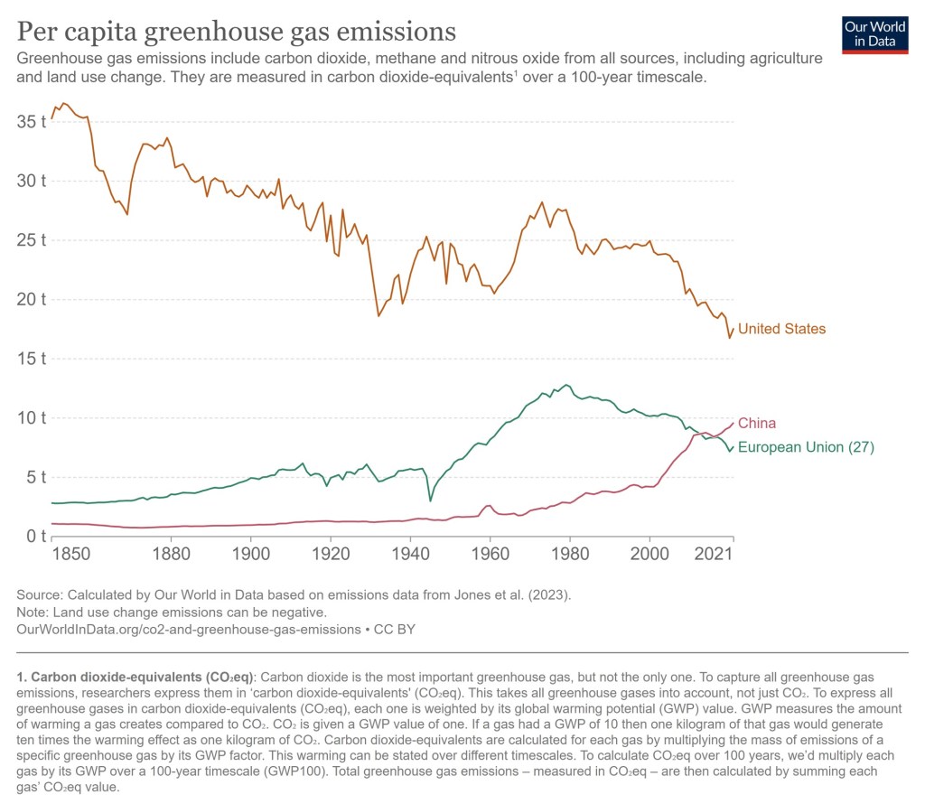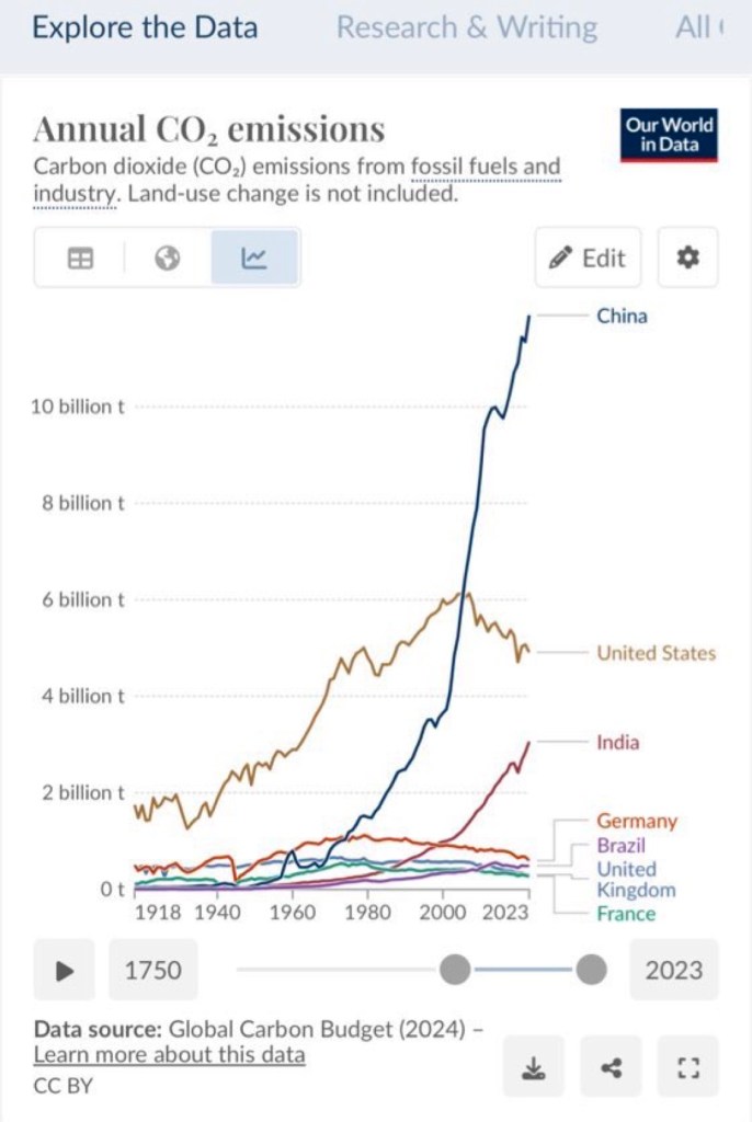 Det är absolut så att Västvärlden har de högsta utsläppen per person och har ansvar för att agera förebild och stötta omställningen ekonomiskt men utan att Kina agerar så sker ingenting.
