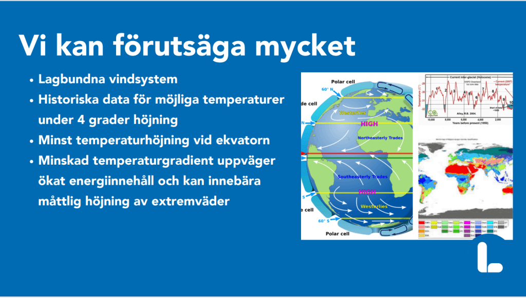 Vi ser hur lagbundna våra vindsystem är, vi ser att vi har historiska data för upp till den temperatur höjning som är möjlig och vi ser att ökningen av extremväder blir måttlig.