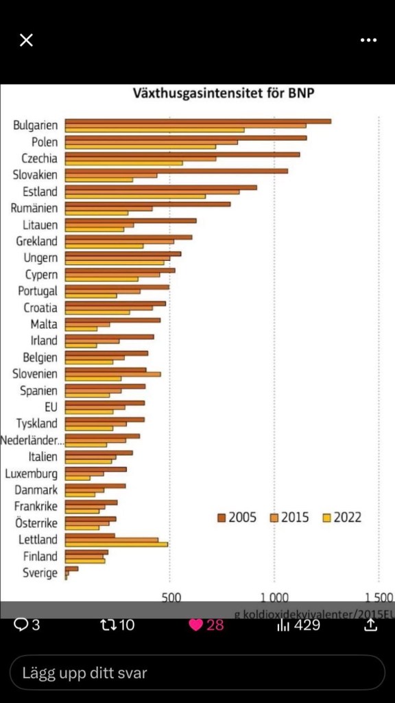 Det är ur ett omfattande material helt uppenbart att vi har låga utsläpp per capita. Det betyder att vi svenskar sköter oss bättre än de flesta och det skulle kunna vara något att vara stolta över.