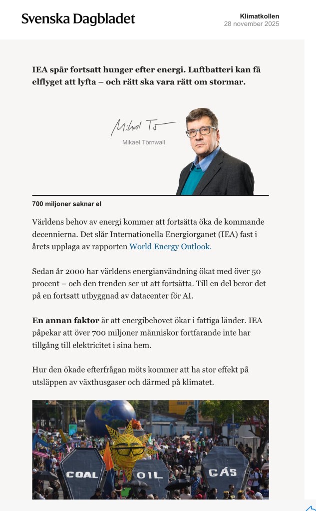 Skogen är mer än en kolsänka tar upp hur viktig och ökande kolsänka våra skogar är. Det senaste har dock kolsänkan minskat något men DI argumenterar för att vi som land ändå har ett bra läge med både låga utsläpp och stor kolinlagring.