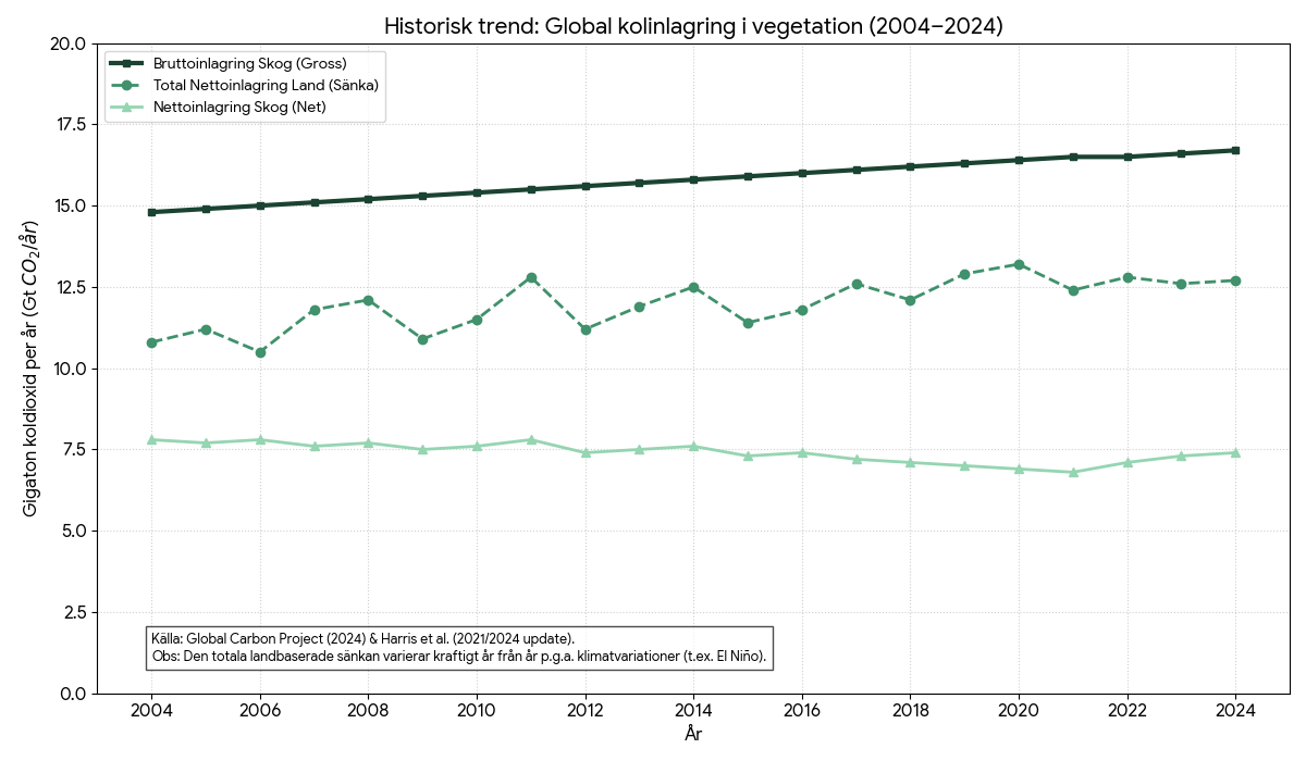 - Analys: Det stämmer att satellitdata visar en ökad bladarea (Greening) över stora delar av jorden sedan 1980-talet, främst p.g.a. $CO_2$-gödsling. Det som är diskutabelt är slutsatsen om skördarna. Även om $CO_2$ ökar tillväxten, kan extrema väderhändelser (som värmeböljor och torka) snabbt radera ut dessa vinster. Dessutom minskar ofta näringsinnehållet (zink, järn, protein) i grödor vid högre $CO_2$-halter.